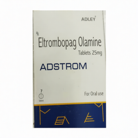 Eltrombopag, which is a part of Adstrom 25 tablet, is a thrombopoietin receptor agonist that is used to stimulate platelet production in patients with certain haematological issues. It is mostly recommended to treat disorders that are mainly marked by thrombocytopenia as a result of disrupted platelet genesis. In physiological conditions, thrombopoietin binds to bone marrow stimulating it to produce platelets; Eltrombopag mimics this process by binding to megakaryocyte thrombopoietin receptors, thus stimulating platelet production and reducing the risk of haemorrhage. It is an oral agent that is used when other treatment solutions have not yielded enough results.