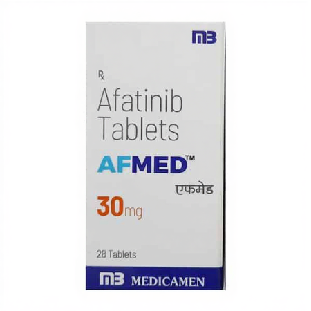 Afmed 30 tablet is a drug that is available in 30mg of Afatinib dimaleate and is classified an an antineoplastic pharmacologic agent used in the management of selected solid neoplasms with the most notable being pulmonary carcinoma. This compound belongs to a pharmacologic group of tyrosine kinase inhibitors (TKI) and it is known to adopt its anticancer efficacies by selectively suppressing the occurrence of aberrant molecular signalling pathways that support unchecked cellular proliferation and metastatic expansion, thus slowing down the events of the disease and reducing the tumour burden in the affected individuals.