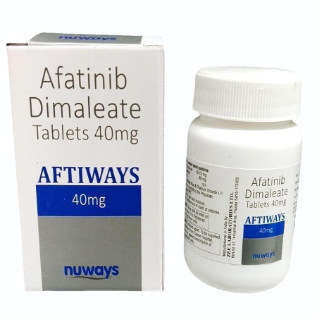 Aftiways 40 tablet is a drug that is available in 40mg of Afatinib dimaleate and is classified an an antineoplastic pharmacologic agent used in the management of selected solid neoplasms with the most notable being pulmonary carcinoma. This compound belongs to a pharmacologic group of tyrosine kinase inhibitors (TKI) and it is known to adopt its anticancer efficacies by selectively suppressing the occurrence of aberrant molecular signalling pathways that support unchecked cellular proliferation and metastatic expansion, thus slowing down the events of the disease and reducing the tumour burden in the affected individuals.