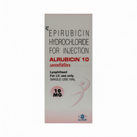 Alrubicin 10 injection is composed of Epirubicin, an antineoplastic agent which is a member of the anthracycline antibiotic group. It is mostly prescribed in the treatment of the solid tumours, especially the breast cancer and other malignancies. Epirubicin has a therapeutic effect which is mediated by perturbation of DNA replication and transcription in malignancies that proliferate rapidly. In a physiological context, genomic integrity is fundamental in the survival and multiplication of cells, and derailing these mechanisms, Epirubicin inhibits in an effective way the proliferation of tumour cells. Epirubicin has been considered to have a relatively low tendency towards cardiotoxicity and maintain a high anticancer activity when compared with other anthracycline drugs, which is why it is used either as monotherapy or in combination with other chemotherapeutic drugs.