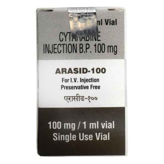 Cytarabine, which is a part of Arasid 100 injection, is an antimetabolite drug that falls in the category of antineoplastic drugs, i.e., a pyrimidine analog. It is commonly employed to treat hematological malignancies particularly leukemias. Cytarabine acts by disrupting the human DNA production in cells that tend to divide very fast thus preventing the further growth of cancer cells. It is very specific to those cells that are at the S-phase of cell cycle hence it is very effective against the rapidly-growing cancerous cells.