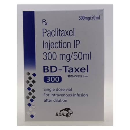 BD Taxel 300 is an injectable combination of 300mg of paclitaxel which is a known antineoplastic drug used in the treatment of several types of solid tumours, such as breast, lung, ovarian, and pancreatic cancer. Being a representative of the taxane group, its antimyotic action occurs with the help of stabilisation of microtubules, thus not allowing them to depolymerize.. This specific interference with cell division is what results in inhibition of cell proliferation of tumour cells and thus this reduces disease progression and lowers the tumour burden in the affected subject.