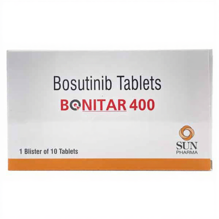 Bosutinib 400mg is an anticancer therapeutic used in the treatment of particular hematologic cancer. The compound is sold as a tablet by various commercial names such as Bonitar 400. It is a Tyrosine Kinase Inhibitor (TKI) and its antitumor activity is due to selective inhibition of malignant cellular proliferation through the selective blockage of the aberrant protein signaling pathways. As a result, the agent decreases the tumor mass and retards the development of malignant cells.
