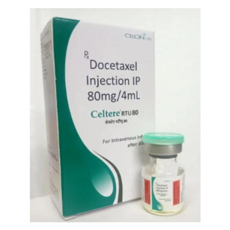 Celtere injectable 80mg is a chemotherapeutic agent that is used in the management of numerous solid tumours, such as breast, lung, prostate, gastric, and head-and-neck tumours. It is a taxane antineoplastic agent which acts by stabilising the microtubules hence preventing their dismantling during mitosis as is the case with this group of drugs.