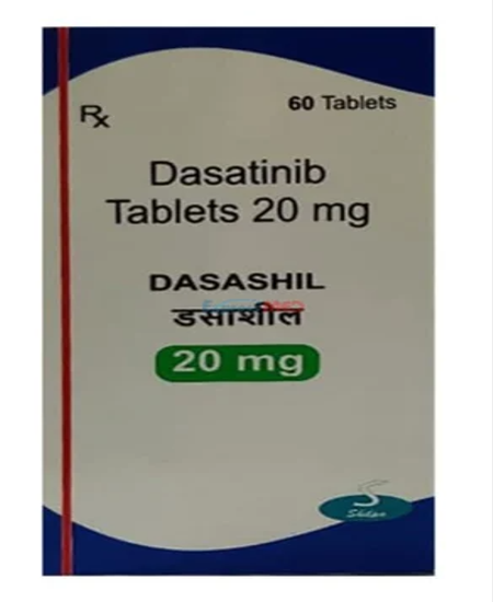 A pharmacologic agent that is used in the treatment of chronic myeloid leukaemia and acute lymphoid leukaemia is Dasatinib 20mg, which is prescribed in the form of Dasashil 20 tablet. This is a tyrosine-kinase-inhibtor (TKI), which has antitumor effects, that is selective in blocking the growth and metastasis of malignant cells, as a result, it helps to reduce the tumour load.