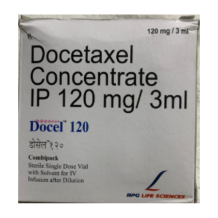 Docel injectable 120mg is a chemotherapeutic agent that is used in the management of numerous solid tumours, such as breast, lung, prostate, gastric, and head-and-neck tumours. It is a taxane antineoplastic agent which acts by stabilising the microtubules hence preventing their dismantling during mitosis as is the case with this group of drugs.