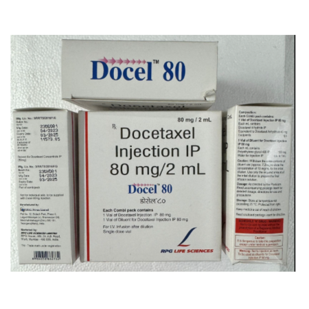 Docel 80 is used to treat breast cancer, non- small- cell lung cancer, prostate cancer, gastric cancer, and head and neck cancer mainly. Depending on clinical consideration, the agent can be used as monotherapy or used concomitantly with other cytotoxic regimens.