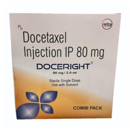 Doceright injectable 80mg is a chemotherapeutic agent that is used in the management of numerous solid tumours, such as breast, lung, prostate, gastric, and head-and-neck tumours. It is a taxane antineoplastic agent which acts by stabilising the microtubules hence preventing their dismantling during mitosis as is the case with this group of drugs.