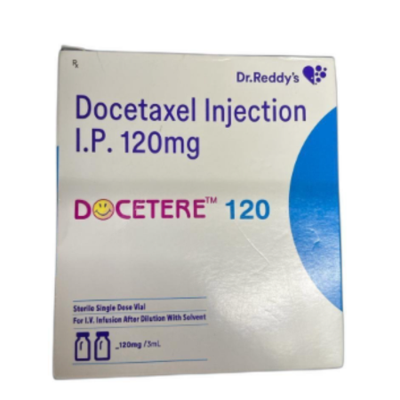 Docetere injectable 120mg is a chemotherapeutic agent that is used in the management of numerous solid tumours, such as breast, lung, prostate, gastric, and head-and-neck tumours. It is a taxane antineoplastic agent which acts by stabilising the microtubules hence preventing their dismantling during mitosis as is the case with this group of drugs.
