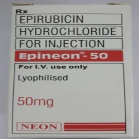 Epineon 50 injection is composed of Epirubicin, an antineoplastic agent which is a member of the anthracycline antibiotic group. It is mostly prescribed in the treatment of the solid tumours, especially the breast cancer and other malignancies. Epirubicin has a therapeutic effect which is mediated by perturbation of DNA replication and transcription in malignancies that proliferate rapidly. In a physiological context, genomic integrity is fundamental in the survival and multiplication of cells, and derailing these mechanisms, Epirubicin inhibits in an effective way the proliferation of tumour cells. Epirubicin has been considered to have a relatively low tendency towards cardiotoxicity and maintain a high anticancer activity when compared with other anthracycline drugs, which is why it is used either as monotherapy or in combination with other chemotherapeutic drugs.
