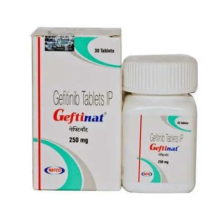 Geftinat 250 tablet is a drug that is available in 250mg of gefitinib and is classified an an antineoplastic pharmacologic agent used in the management of selected solid neoplasms with the most notable being pulmonary carcinoma. This compound belongs to a pharmacologic group of tyrosine kinase inhibitors (TKI) and it is known to adopt its anticancer efficacies by selectively suppressing the occurrence of aberrant molecular signalling pathways that support unchecked cellular proliferation and metastatic expansion, thus slowing down the events of the disease and reducing the tumour burden in the affected individuals.