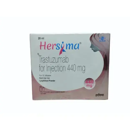 Hersima 440 injection is a Trastuzumab formulation that is used in the treatment process of the selected HER2-positive breast and gastric malignancies. It is a group of specific biologic antineoplastic agents and operates its anti-cancerous action by specific selection to the human epidermal growth factor receptor-2 (HER2) on tumour cells. The specific blockage of these pathway disturbs the abnormal cell signalling pathway that contribute to uncontrolled proliferation and spread and thereby inhibiting the disease progression and truncating the tumour burden of the affected individuals.