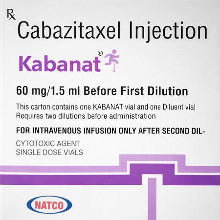 Kabanat 60 mg/ml Injection is the anticancer agent Cabazitaxel that is mostly used in treating advanced or metastatic prostate cancer. It is a part of the group of taxane antitumor agents and works by its therapeutic action by stabilising the microtubules thus preventing their normal disaggregation during mitosis. This selective inhibition of the cell division impairs tumour cell growth, which ultimately leads to slowing down of disease progression and lessening the tumour burden among the affected patients.