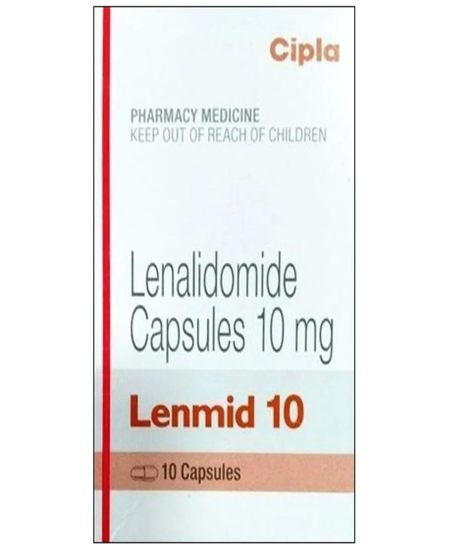 Lenmid 10 capsule is used in treatment of multiple myeloma, which is a plasma cell neoplastic disorder of the bone marrow. This is a malignancy that is a type of blood cancer, which is associated with the marrow microenvironment and the clonal proliferation of malignant plasma cells. Adjunctive medicines, like dexamethasone, are common in order to increase the therapeutic efficacy. Moreover, clinicians also prescribe this drug to patients with myelodysplastic syndrome as a clonal hematopoietic pathology that develops when the bone marrow is unable to produce blood cells in people with a del(5q) chromosomal anomaly.