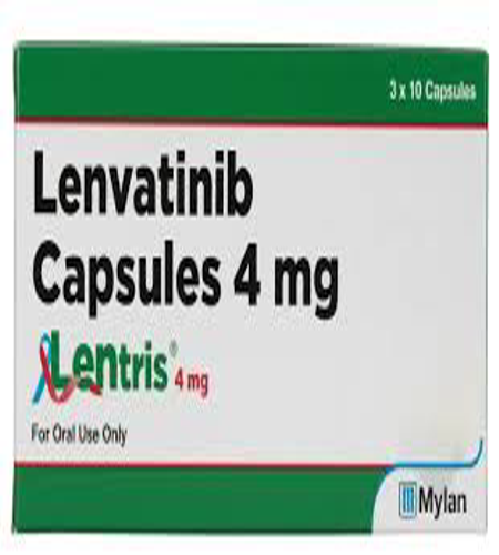Lentris 4 capsules contain 4mg Lenvatinib, a medicine used to treat particular type of cancer like liver cancer, kidney cancer, differentiated thyroid cancer, and endometrial cancer. This drug acts as a tyrosine kinase inhibitor (TKIs), and tries to inhibit the certain protein which is necessary for the growth and spread of cancer cell and it also helps to reduce the size of tumor.