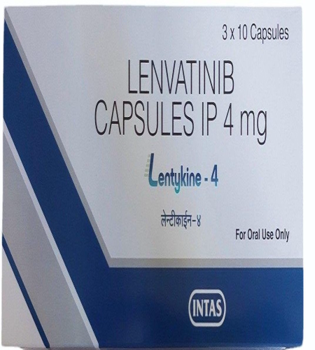 Lentykine 4 capsules contain 4mg Lenvatinib, a medicine used to treat particular type of cancer like liver cancer, kidney cancer, differentiated thyroid cancer, and endometrial cancer. This drug acts as a tyrosine kinase inhibitor (TKIs), and tries to inhibit the certain protein which is necessary for the growth and spread of cancer cell and it also helps to reduce the size of tumor.