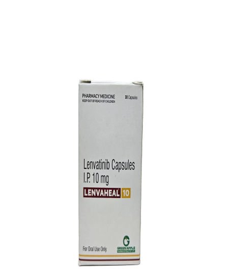 Lenvaheal 10 capsules contain 10mg Lenvatinib, a medicine used to treat particular type of cancer like liver cancer, kidney cancer, differentiated thyroid cancer, and endometrial cancer. This drug acts as a tyrosine kinase inhibitor (TKIs), and tries to inhibit the certain protein which is necessary for the growth and spread of cancer cell and it also helps to reduce the size of tumor.