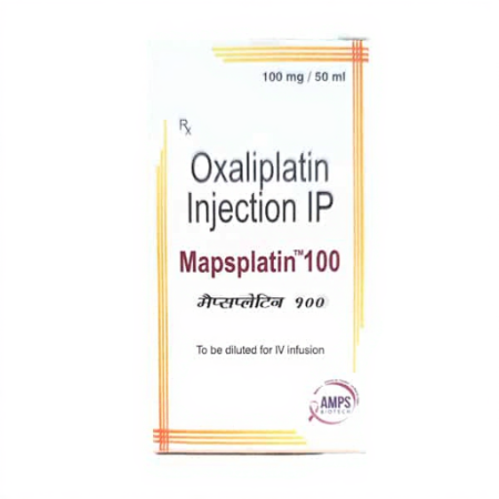 Mapsplatin 100 injection is a platinum-based chemotherapeutic agent of 50mg Oxaliplatin which is used to treat various solid tumours. Oxaliplatin is a member of alkylating-like cytotoxic agents. It is believed to work by developing covalent cross-linked association with the DNA in malignant cells; hence, interfering with DNA replication and transcription. The subsequent genomic damage causes tumour cell proliferation inhibition and eventual apoptosis hence reducing tumour burden and controlling disease progression.