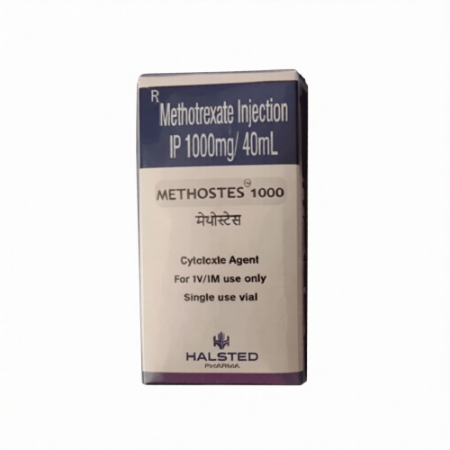 Methotrexate, Methostes Injection 1000mg is an antineoplastic drug belonging to an antimetabolites group, and an antagonist of folic acid. It has many applications in management of different cancers and autoimmune diseases. The medication disrupts the process of DNA replication in the quickly growing cells thus suppressing the growth of the tumor. Cancer cells are more susceptible to its action since they are known to divide rapidly. Nonetheless, toxicity can be caused by the normal rapid proliferating cells like those of the bone marrow and gastrointestinal lining. The high dose therapy and where drug control delivery is necessary is preferred in injectable form.