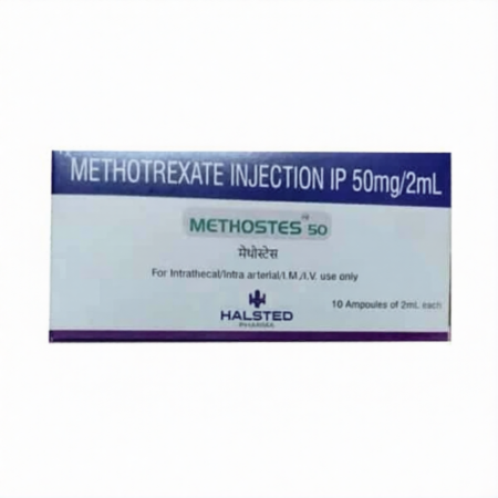 Methotrexate, Methostes Injection 50 mg is an antineoplastic drug belonging to an antimetabolites group, and an antagonist of folic acid. It has many applications in management of different cancers and autoimmune diseases. The medication disrupts the process of DNA replication in the quickly growing cells thus suppressing the growth of the tumor. Cancer cells are more susceptible to its action since they are known to divide rapidly. Nonetheless, toxicity can be caused by the normal rapid proliferating cells like those of the bone marrow and gastrointestinal lining. The high dose therapy and where drug control delivery is necessary is preferred in injectable form.