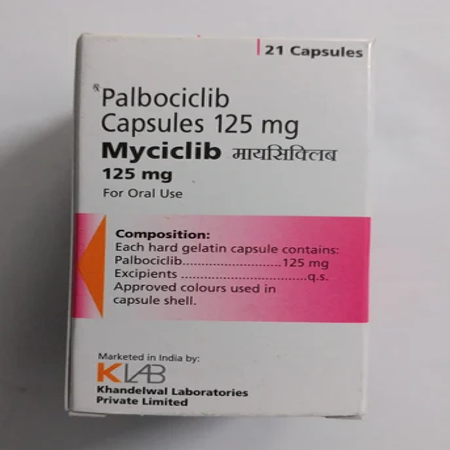 Myciclib 125 capsule is a cyclin dependent kinase inhibitor that produces its action by inhibiting the certain chemical messengers cyclin dependent kinase 4 and 6 which helps to arrest the cycle of cancer cell.