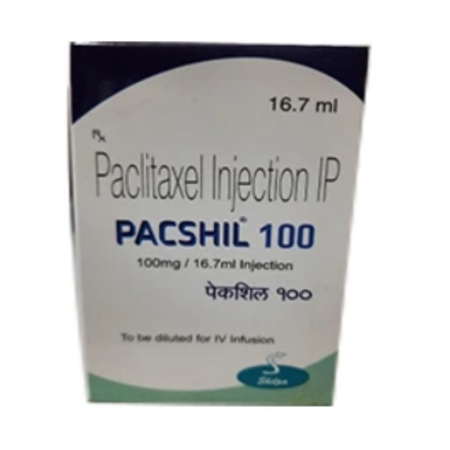 Pacshil 100 is an injectable combination of 100mg of paclitaxel which is a known antineoplastic drug used in the treatment of several types of solid tumours, such as breast, lung, ovarian, and pancreatic cancer. Being a representative of the taxane group, its antimyotic action occurs with the help of stabilisation of microtubules, thus not allowing them to depolymerize.. This specific interference with cell division is what results in inhibition of cell proliferation of tumour cells and thus this reduces disease progression and lowers the tumour burden in the affected subject.