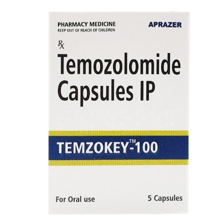 Temzokey 100 capsule, which contains Temozolomide is an oral antineoplastic agent which falls under the category of alkylating agents. It is mainly used in the treatment of tumours of the central-spinal cord because of its expertise in crossing the blood-brain barrier. The drug works by causing DNA damage in the fast growing neoplastic cells hence blocking their growth and proliferation. It is widely used in diseases like glioblastoma and other malignant gliomas such as in combination with radiotherapy as monotherapy.