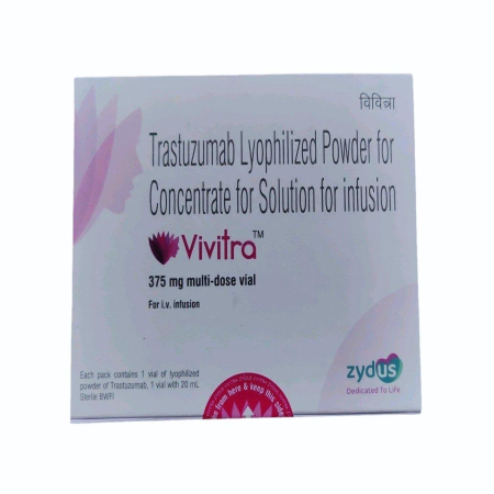 Vivitra 375 injection is a Trastuzumab formulation that is used in the treatment process of the selected HER2-positive breast and gastric malignancies. It is a group of specific biologic antineoplastic agents and operates its anti-cancerous action by specific selection to the human epidermal growth factor receptor-2 (HER2) on tumour cells. The specific blockage of these pathway disturbs the abnormal cell signalling pathway that contribute to uncontrolled proliferation and spread and thereby inhibiting the disease progression and truncating the tumour burden of the affected individuals.